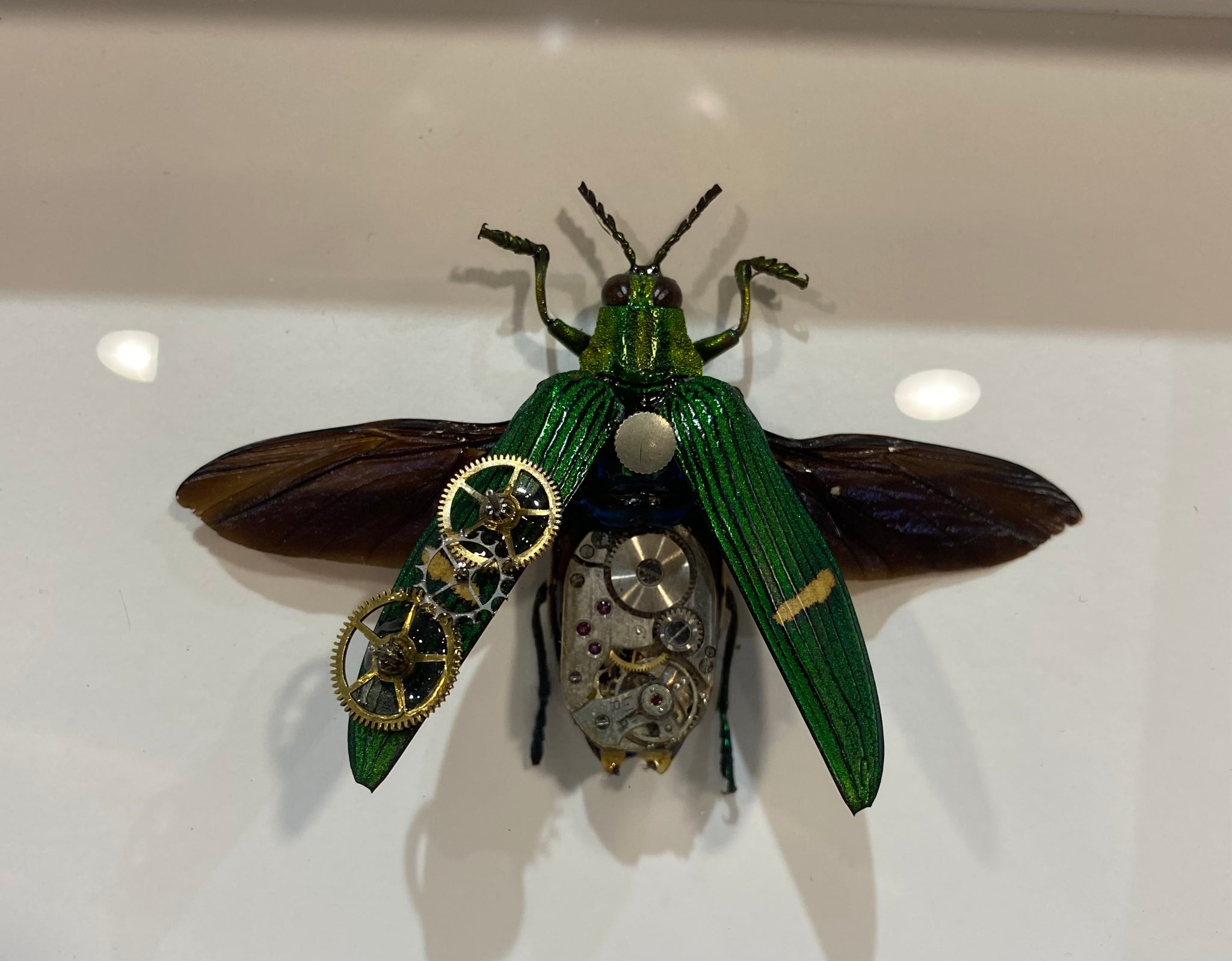 Scarabée catoxantha opulenta de Malaisie présenté ailes ouvertes.