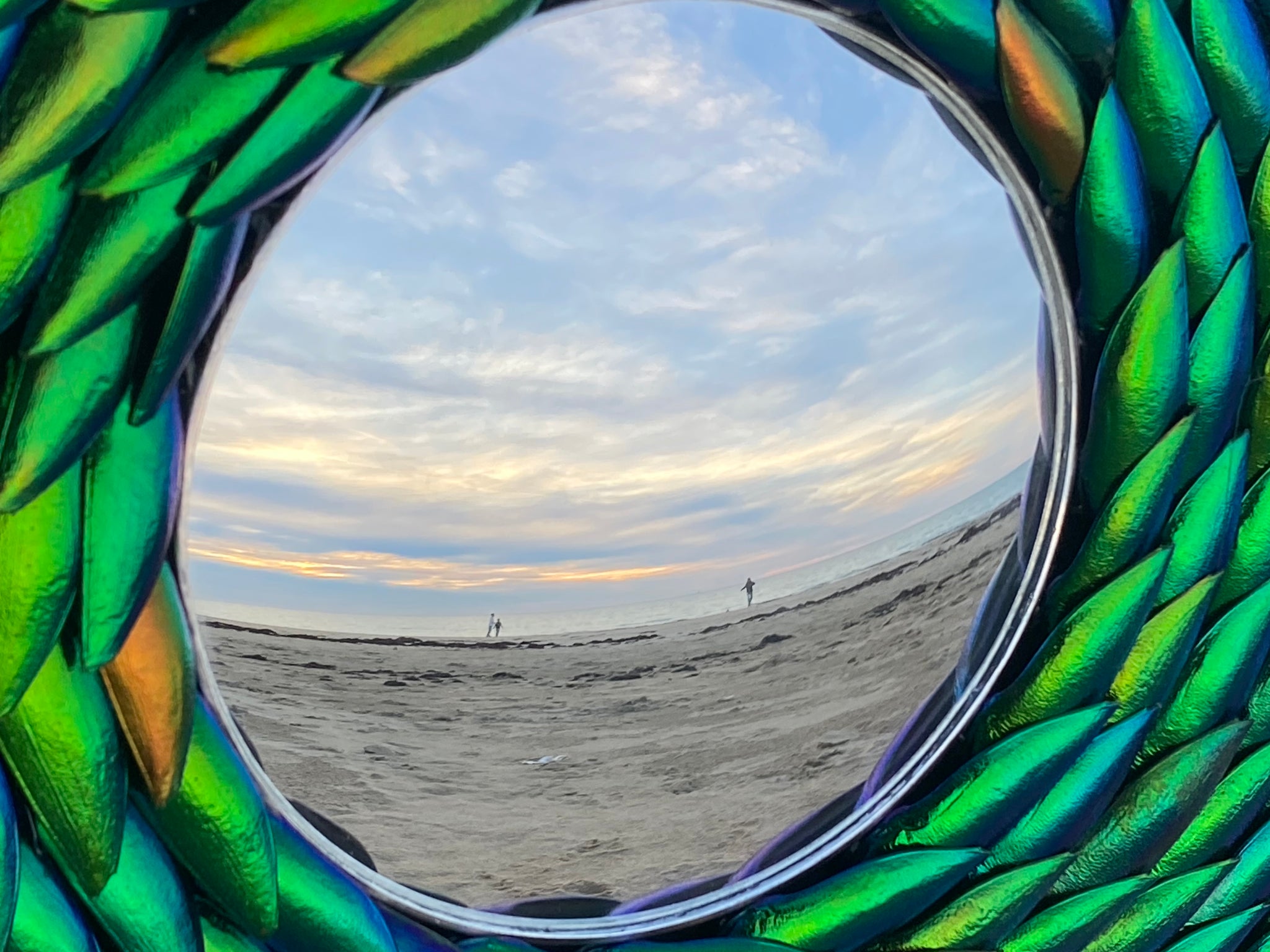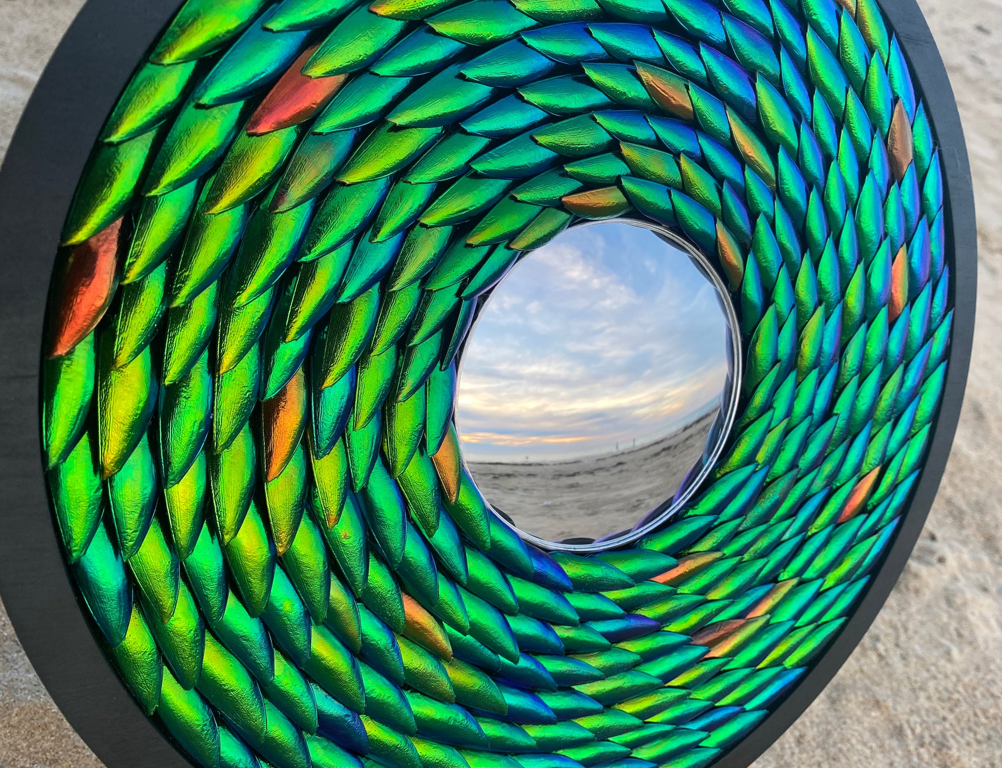 • Charger l'image dans la galerie, Miroir concave avec contour en Elytres de scarabées