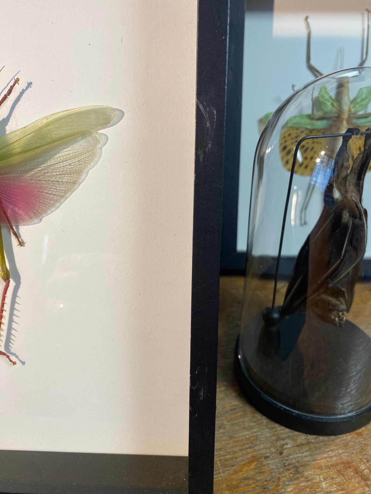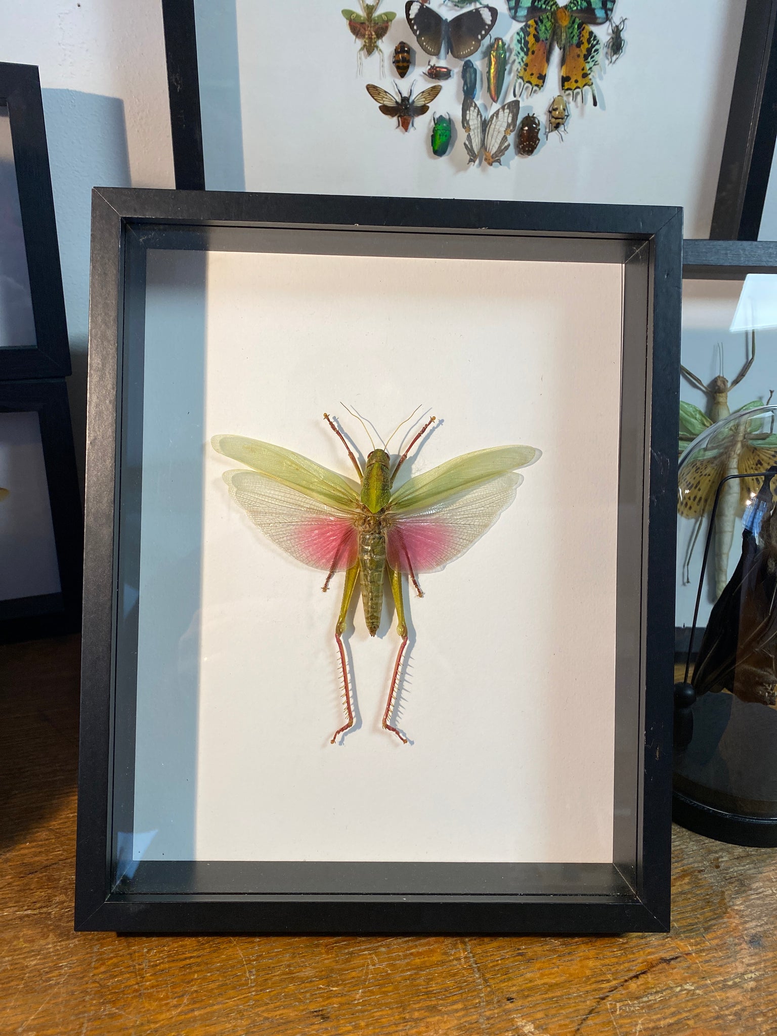 Cadre avec sauterelle Chondacris rosea présenter dans un cadre vitrine mesurant 28,5 x 23 cm.